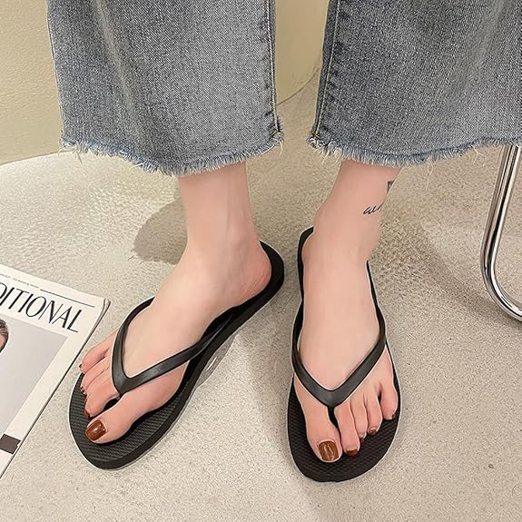 Ultra Lightweight Basic Thongs Rubber Soft Slim Flip Flops for Women